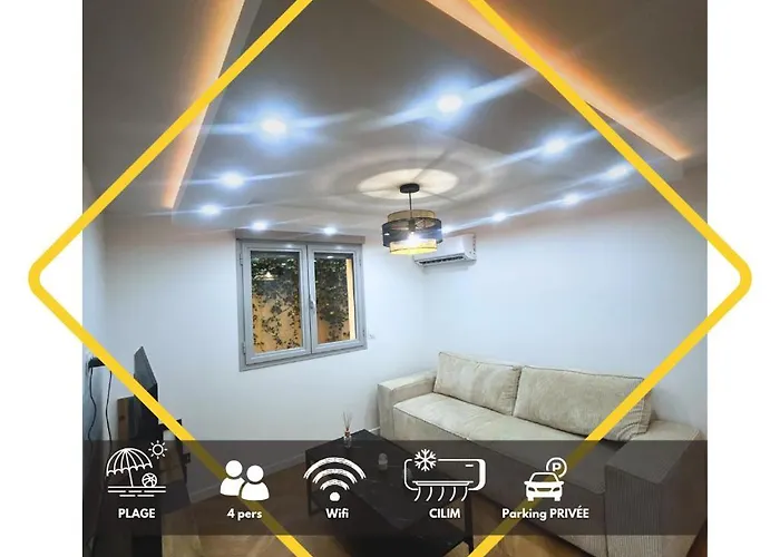 Az 52 m²-es apartman Cannes Carnot körzetben található. A Fesztiválpalota és Kongresszusi Központ továbbá mindössze 1,1 km-re található.